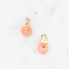Hoop earrings with stainless steel hinged clasps, composed of a U-shaped hoop and a round, glittery acetate piece.